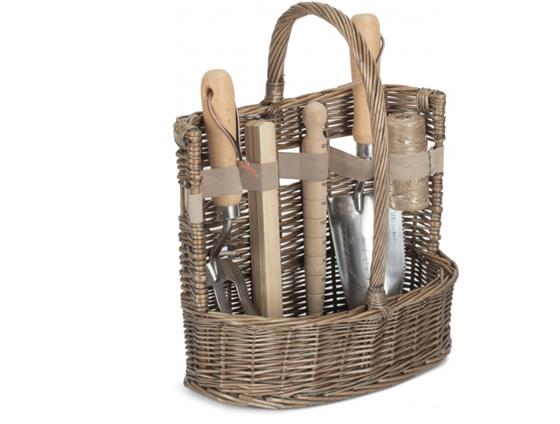 Never lose your gardening tools again! This basket has all the tools you need when planting bulbs and seeds in the garden.