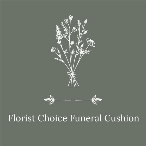 A classic white based Cushion with foliage edging, a spray of seasonal flowers and mixed foliage.